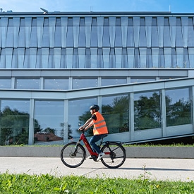 Des vélos électriques sont à disposition des collaborateurs et collaboratrices pour leurs trajets. Cela participe à nos engagements vis-à-vis de la durabilité.