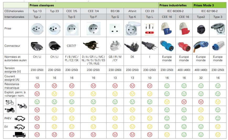 Electrosuisse a édicté un guide sur la mobilité électrique et aborde cette problématique de compatibilité des prises électriques et des recharges.
