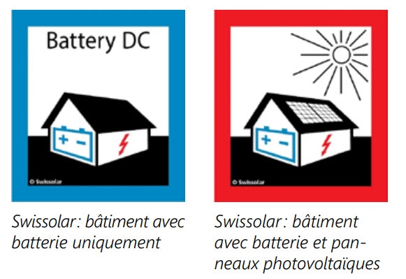 L’utilisation de batteries dans l’alimentation électrique d’un bâtiment sert à l’optimisation/ au lissage de la consommation électrique de ce dernier. Une telle installation peut se faire conjointement, ou non, à une installation photovoltaïque. Les installations de batteries permettant l’alimentation électrique d’un bâtiment doivent être signalées aux intervenants par des marquages adaptés et des moyens de coupures d’urgences doivent être prévus. Cette signalisation doit être immédiatement visible (par exemple sur la porte d’entrée) par les intervenants à leur arrivée.