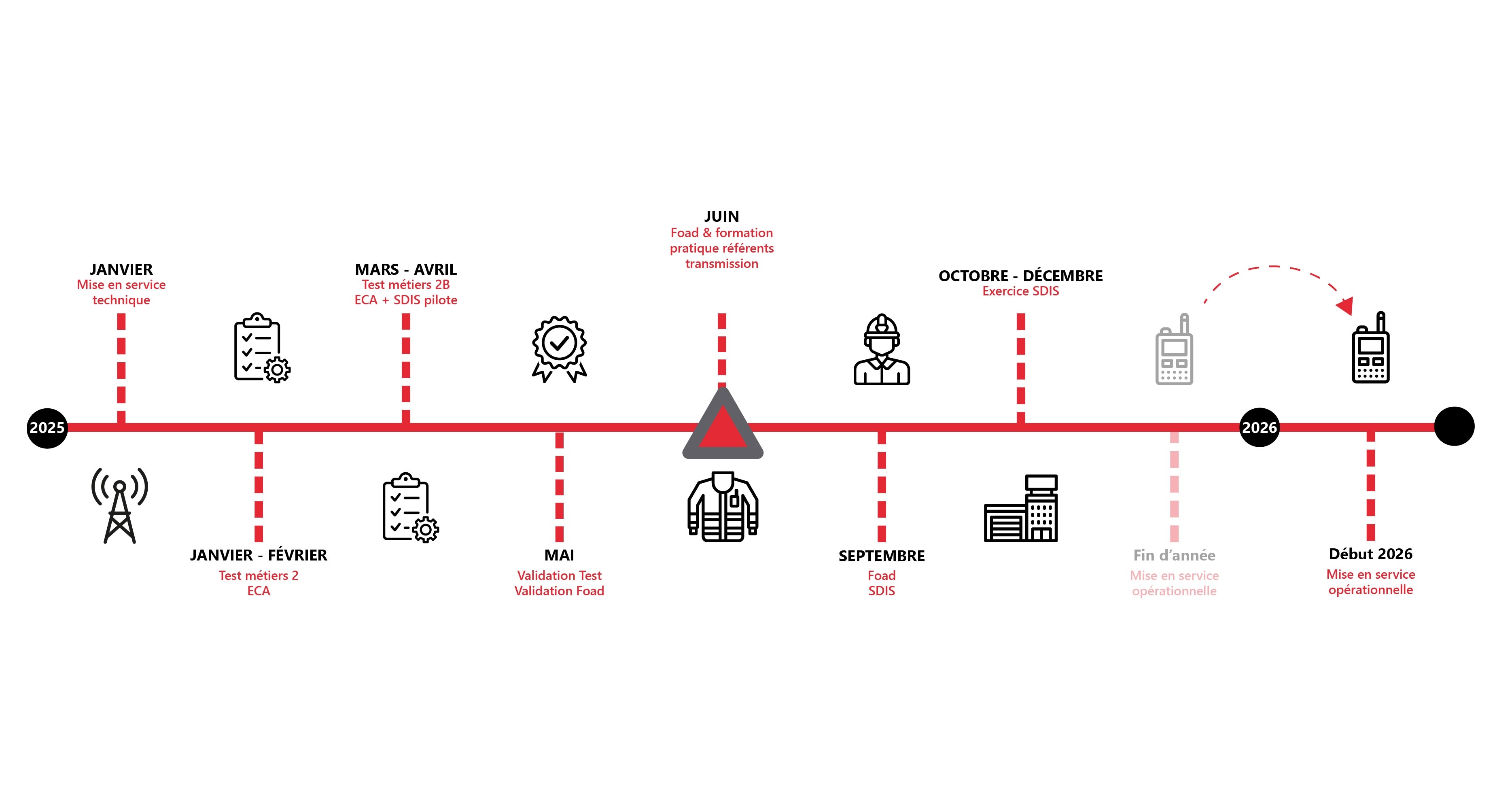 Après les tests avec les SDIS pilotes et la formation des référents transmission, le déploiement de la DMR dans l’ensemble des SDIS se poursuit. Afin de garantir de meilleures disponibilités de créneaux de formation et des conditions optimales de réussite pour tous, la durée initialement prévue pour la formation finale sera prolongée.